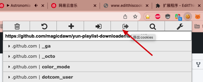 使用 EditThisCookie 导出 cookie到粘贴板 复制使用即可